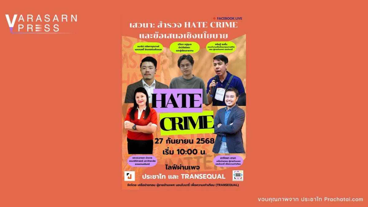 News การเสวนาโดยเครือข่าย TransEqual ชี้ Hate Crime รุนแรงกว่าอาชญากรรมทั่วไป เสนอรัฐแก้กฎหมายและเก็บข้อมูลอย่างจริงจัง Varasarn PressOctober 4, 2025 เขียน: ภัชราพรรณ ภูเงิน ข้อมูลจากการเสวนาโดยเครือข่ายทอม ผู้ชายข้ามเพศ นอนไบนารี่ เพื่อความเท่าเทียม ระบุว่าอาชญากรรมจากความเกลียดชังรุนแรงกว่าอาชญากรรมทั่วไป เพราะมีแรงขับจากความเกลียดชัง พร้อมเสนอให้ทุกภาคส่วนร่วมกันแก้ปัญหา ผลักดันกฎหมายการลงโทษผู้กระทำผิดแบบขั้นบันไดและเสนอให้มีการเก็บข้อมูลอย่างจริงจัง เมื่อวันที่ 27 กันยายน ในงานเสวนาออนไลน์ ‘สำรวจ ... Read more